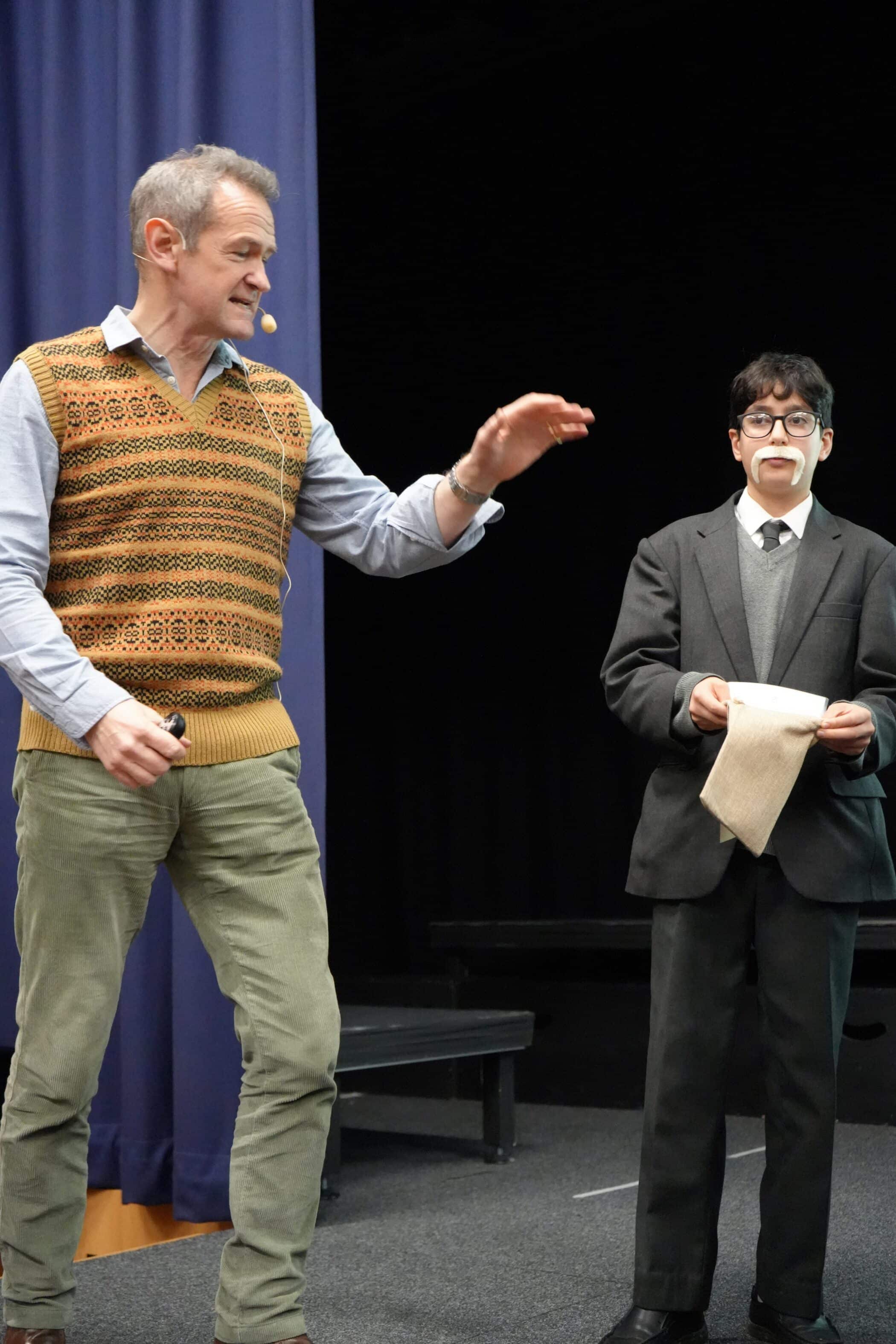 Alexander Armstrong spoke about the inspiration behind the story, read an excerpt to whet our appetites, and led a discussion on the qualities of fictional heroes and villains. He then invited several pupils onto the stage to invent their own characters, before rounding off the session by answering lively questions about his varied career, from voicing Hey Duggee to hosting Pointless.
