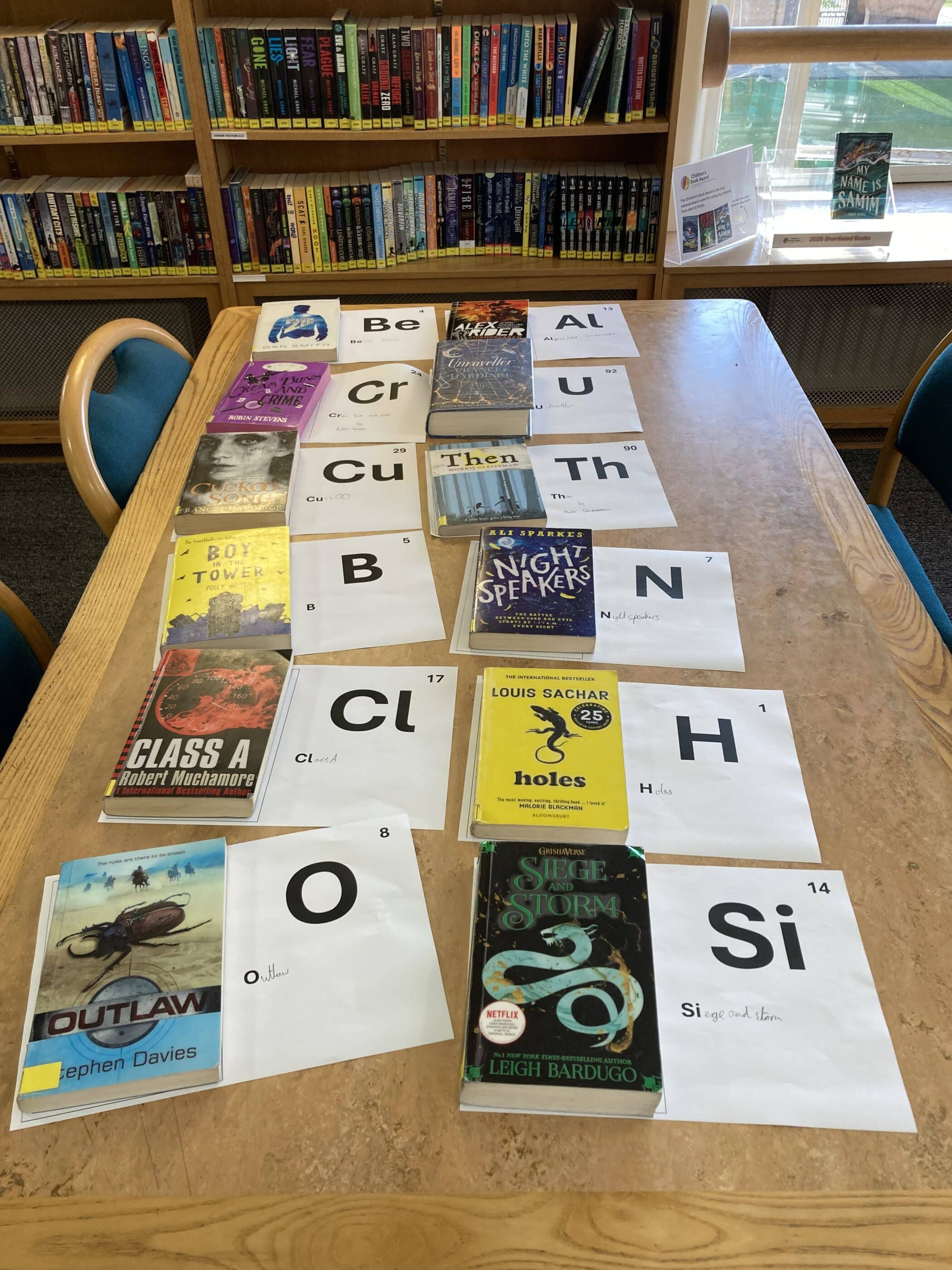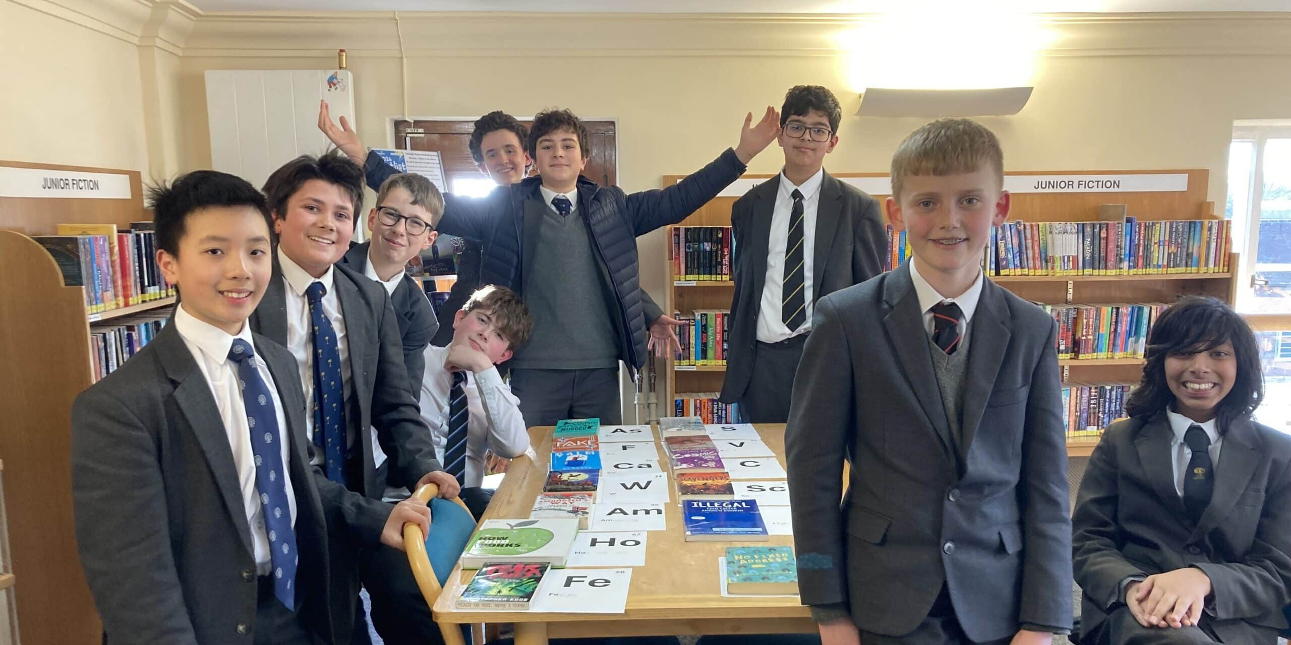 Chase L. (U3rd) liked the idea of conversing with snakes, whilst Gwilym H. (3rd) wanted to be able to move things with his mind, and all agreed that they would not want to live for ever. The group then set about creating a book title periodic table, which they had no trouble doing with the books to hand in the Junior Library.