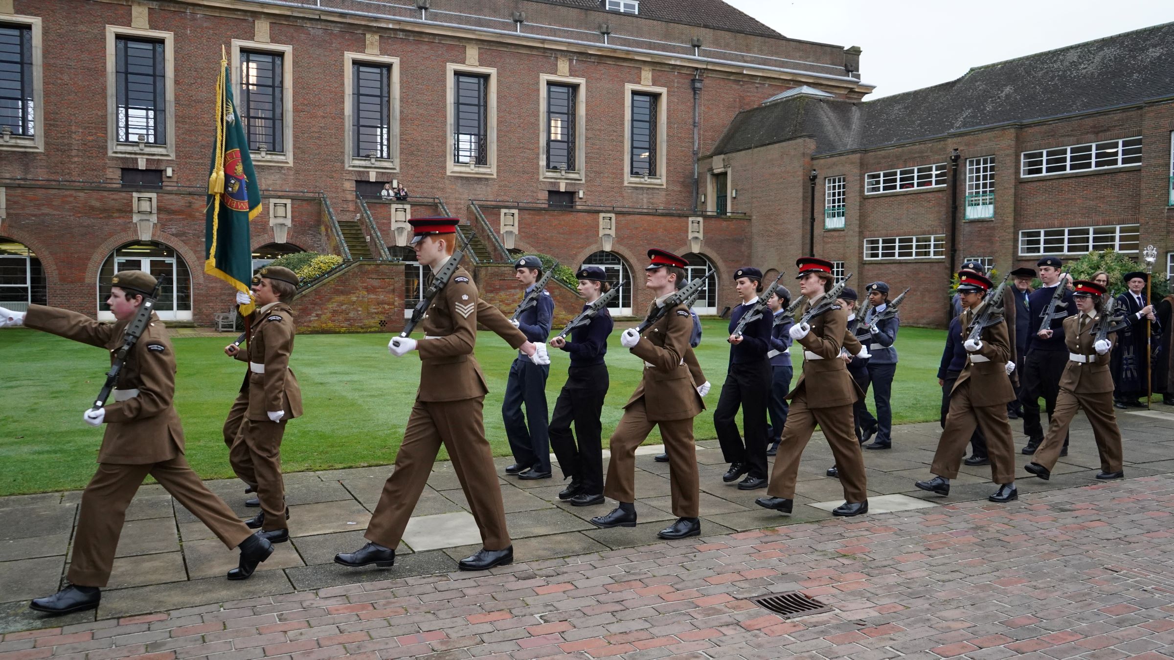 Over time the ceremony developed into a more symbolic event where the majority of pupils and teachers could relax as they were no longer being examined. The day eventually became a simple procession of the Livery Company and School Governors into the Great Hall for a short assembly and ending with the School Song and the National Anthem. Today the Master and Wardens of the Merchant Taylors’ Company still visit the school, they inspect the CCF Guard of Honour. They then process into the Great Hall for an assembly where the Master of the Company addresses the staff and pupils and is responded to by the Head Monitor on behalf of the School.