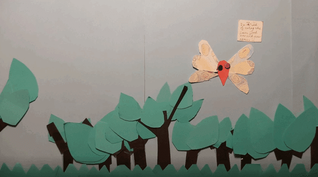 Avyan G. (4th) submitted a beautifully crafted paper stop-motion video of the butterfly’s day, an imagined sequel to The Very Hungry Caterpillar by Eric Carle. This won top prize in the film and animation category.