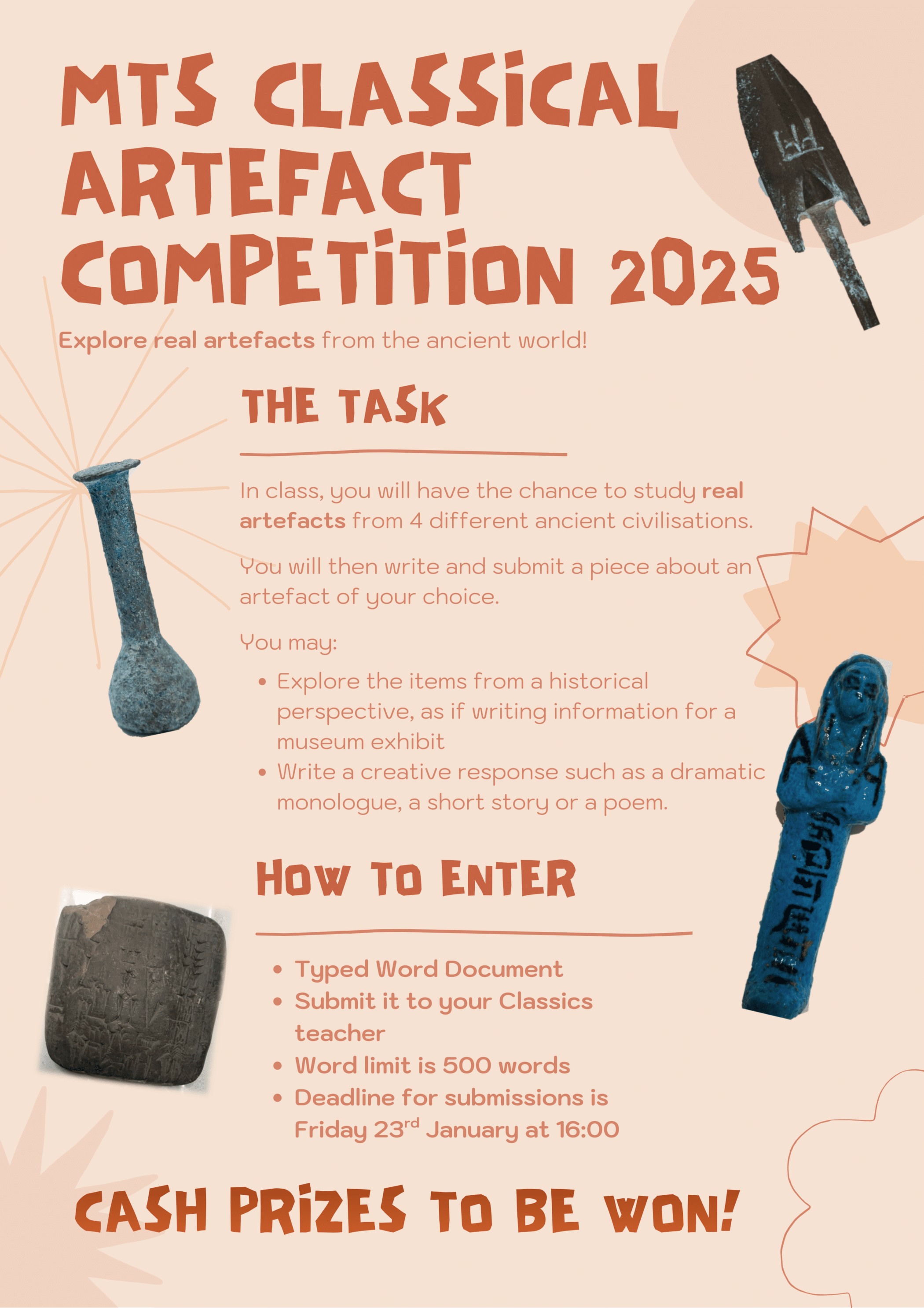 Students can opt to look at the artefacts from a historical perspective, as if creating further information for visitors to a museum, or they can approach the items from a creative perspective. With a deadline of January 23rd, this gives the students plenty of time to investigate the items further and plan their entries. We’re looking forward to seeing what the students produce for our first ever Artefact Competition!