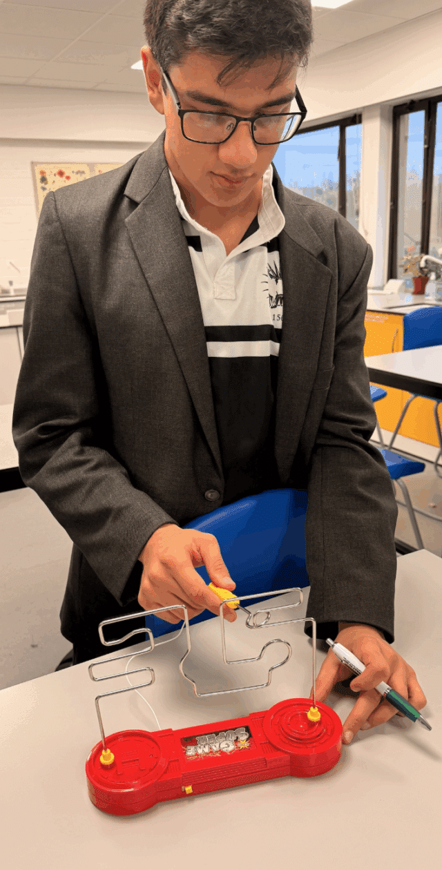 In our manual-dexterity session, students put their steadiness and precision to the test with buzz-wire games, bead-stacking towers, and threading floss through miniature needles – tasks that mirror the fine motor control needed in real procedures.