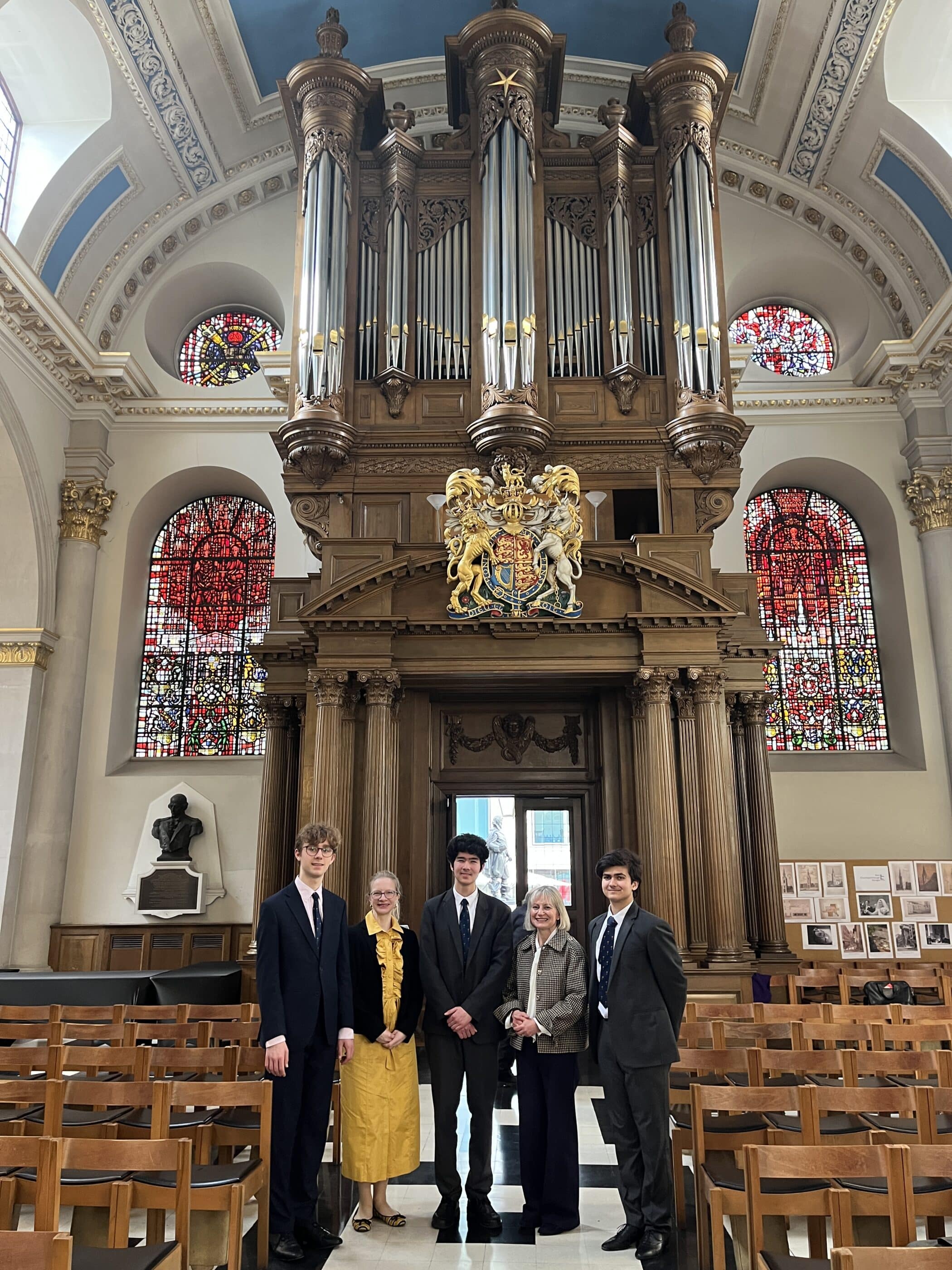 On Wednesday, three of our organists travelled to the church of St Mary-le-Bow in the City to give a recital as part of the Royal College of Organists’ Young Performers’ Series. The concert opened with Steven K. (Divs), who performed Stanford’s Postlude on an old Irish church melody (the hymn tune Gartan), before playing the Adagio from Mendelssohn’s Sonata No. 1. Ethan G. (Divs) played a selection of three pieces, beginning with Recita de Nazard by the French baroque composer Clerambault. Another Mendelssohn movement followed, this time the Andante con moto from his Sonata No. 5. Closing his set with a flourish, Ethan played the Festival Voluntary by Flor Peeters.