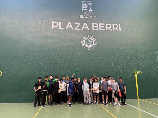 Despite the long Friday, we were up early on Saturday for our surfing lesson. The weather just about stayed dry, though it wasn’t the warmest. There were no complaints however, and the boys thoroughly enjoyed their 90 min session in the surf at Vieux Boucau beach. Following a warm shower and some lunch, we transferred to Domaine du Pignada, our second accommodation which was in Anglet. Sticking to the busy schedule, once we had unpacked we were back out again into Biarritz for our Pelota lesson at the historic Plaza Berri. When we returned to the accommodation, Mr Richardson led a pre-dinner game of Kick Tennis and then Mr Tod took over the post-dinner games.