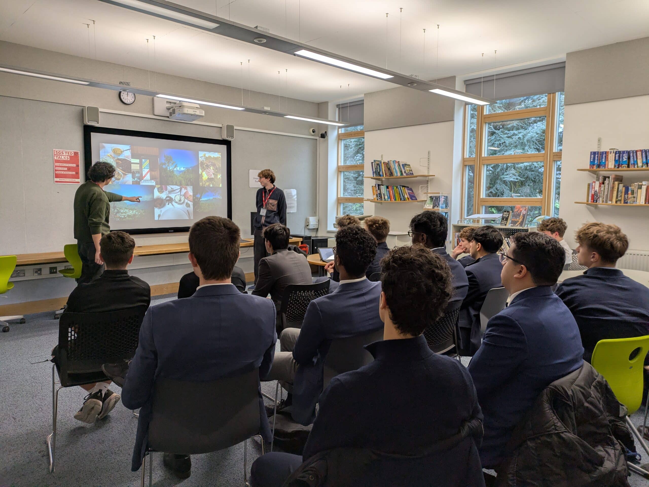 On Tuesday, the Senior Geography Society welcomed OMT members, Alex Munro and Simon Peart, who had taken part in the Richard Green Memorial Prize expedition, who shared reflections on their journey to the island of La Réunion. The session opened with a brief explanation of how future candidates can apply, as well as an overview of how the competition was founded through Richard Green’s passion for global exploration.
