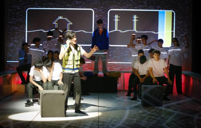 The world can be tricky to navigate, especially if you are a neurodivergent 15-year-old and on a quest to find out who killed your neighbour’s dog. Christopher Boone is the protagonist and narrator of Mark Haddon’s bestselling novel, which has been adapted for the stage by Simon Stephens, and which won both Tony and Olivier Awards for best play. It is a vocally, physically, intellectually, and visually demanding work, and yet again Taylors’ Drama Department have risen to the challenge.