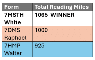 Competition was keen between the English classes with eyes on the Form Prize for highest total miles accumulated. Mrs Shockley’s 7HMP and Mr Wilson’s 7DMS continually swapped the lead throughout the challenge, but it was Mr Hilton-Dennis’s 7MSTH who pipped them both with a late post-half term surge.
